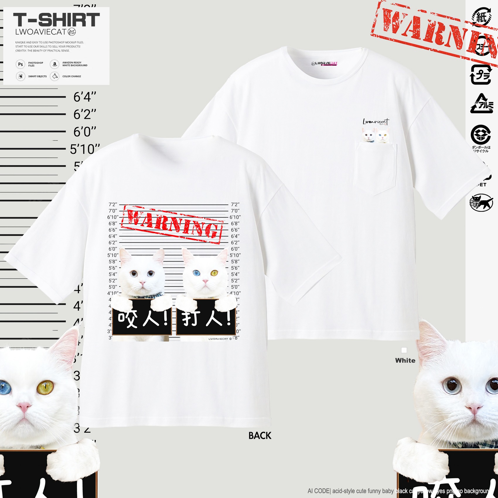 全新孤貓T-Shirt!這次Tee前後都印有孤貓圖案,胸口袋內還藏有孤貓!