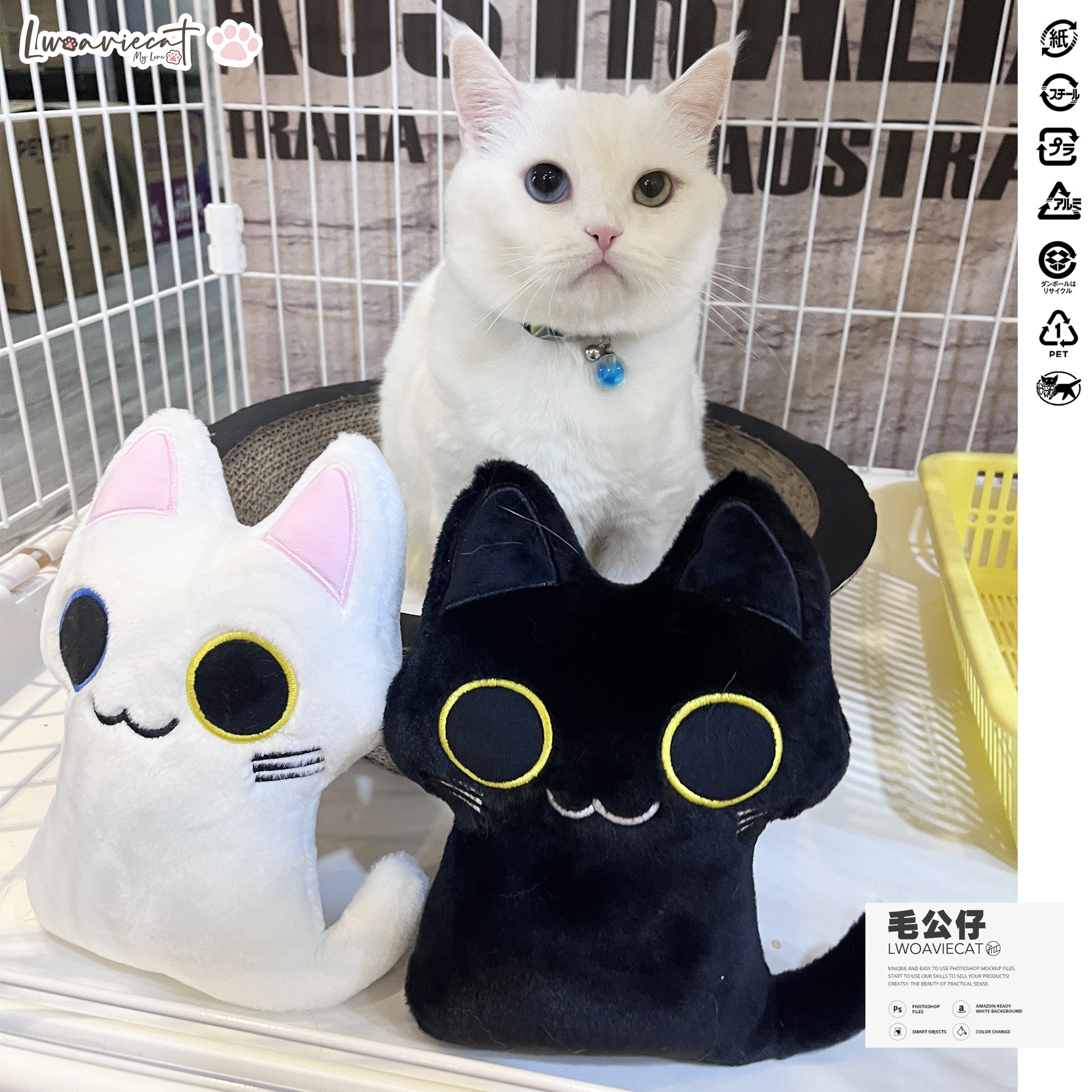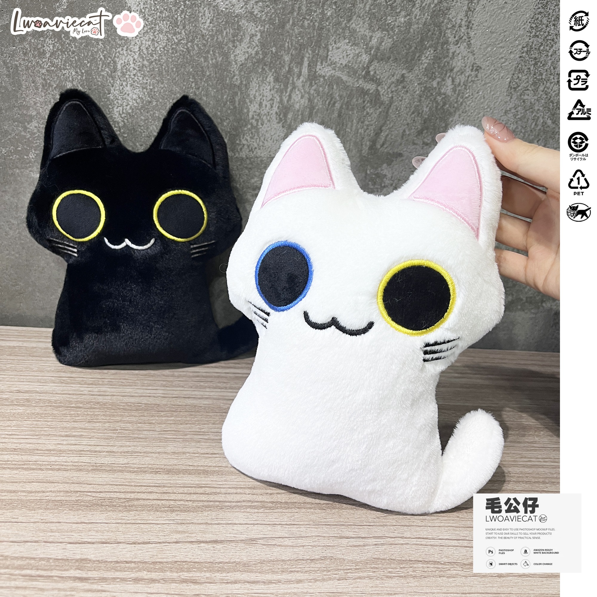 黑白貓瞳瞳豆豉毛公仔