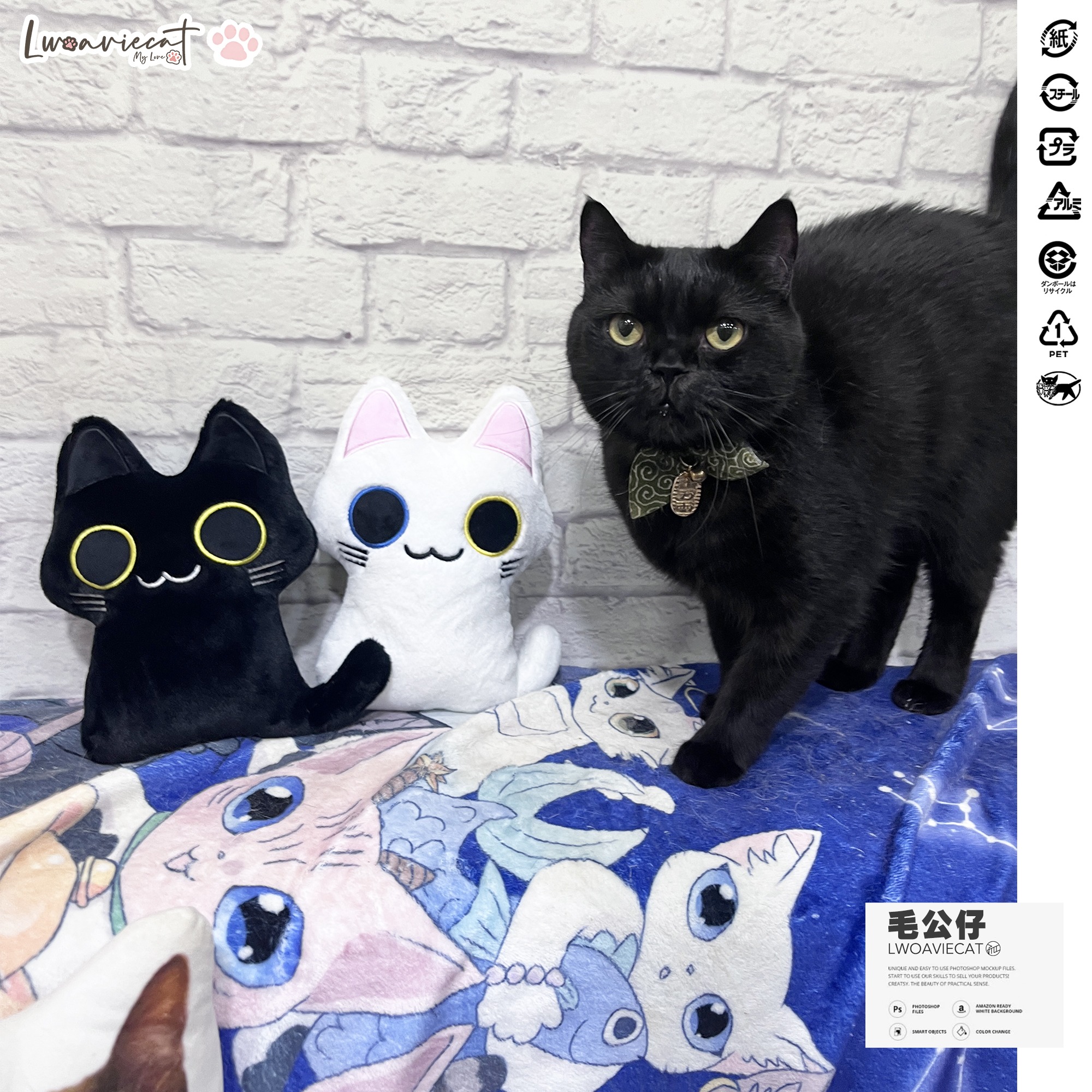 可愛黑白貓毛絨公仔,可放入洗衣機清洗,可自行佩戴飾品頸圈。
