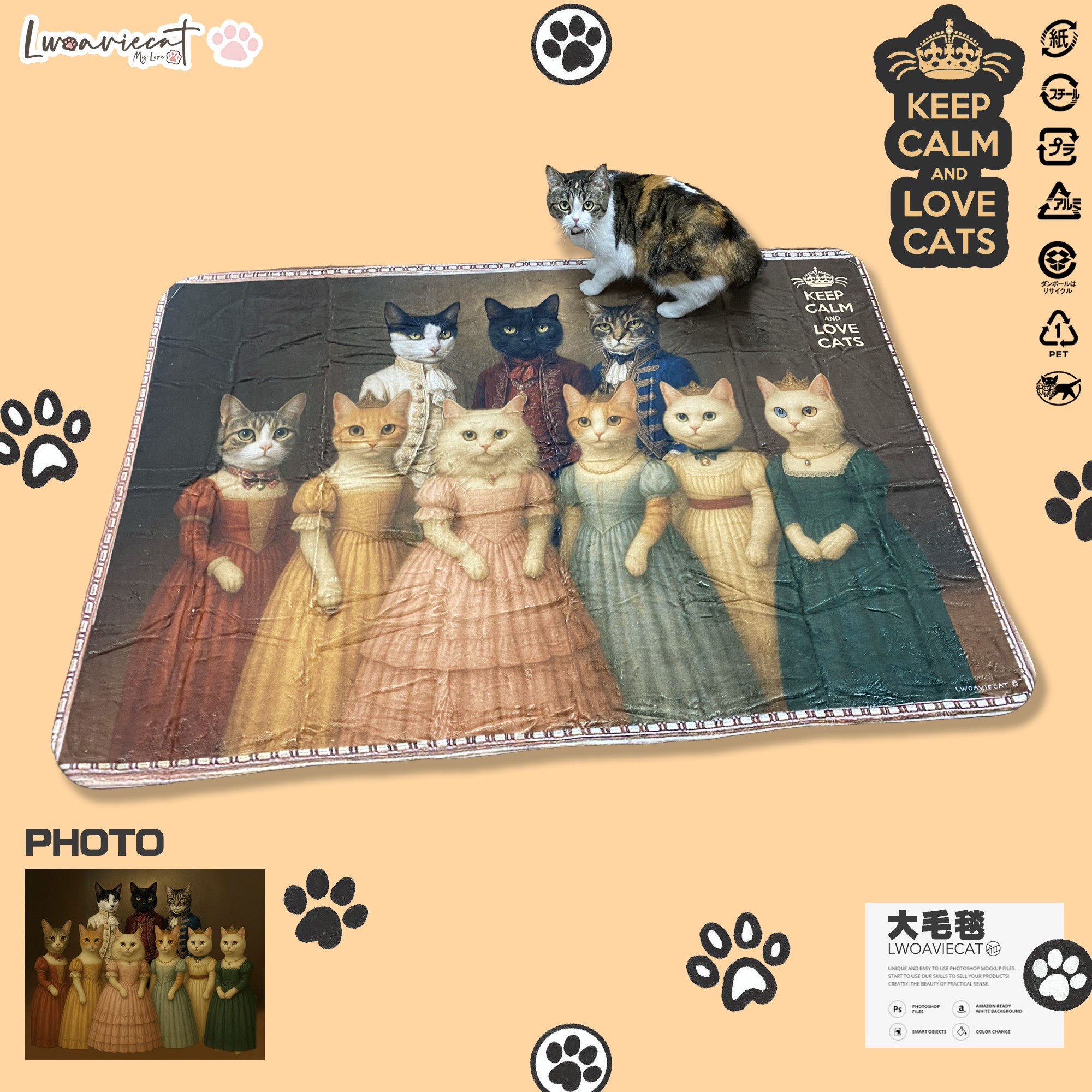 孤貓族榮耀大毛毯,高貴華麗的貓貴族加上相框,可以當作掛畫又可當作披肩沙發被,非常溫暖。