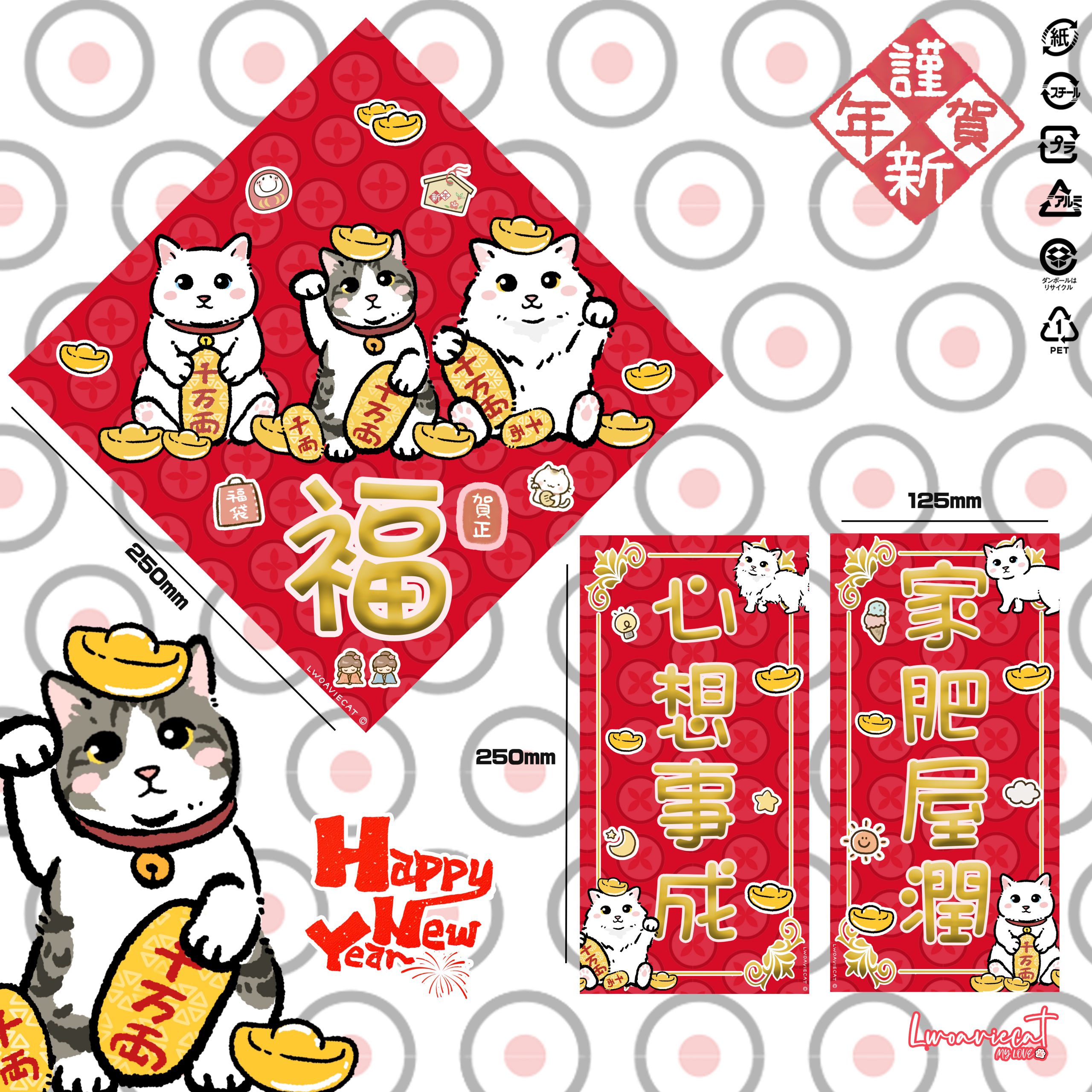 孤貓「福」到、 家肥屋潤、心想事成,一套三款,讓你新一年好事好運齊來!