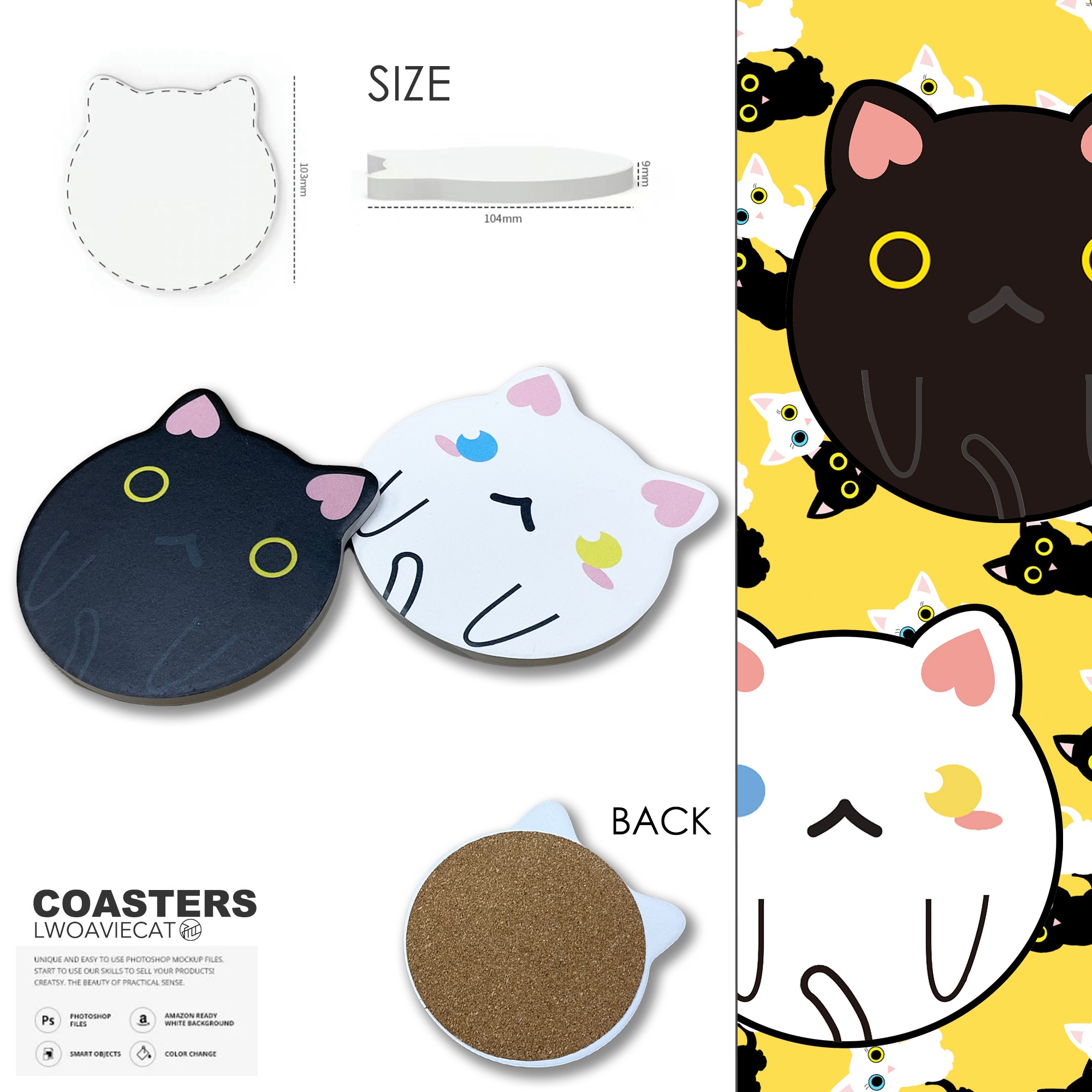 兩款孤貓杯墊瞳瞳💙💛豆豉🖤,請一起把他們帶回家!
